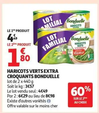Offre HARICOTS VERTS EXTRA CROQUANTS BONDUELLE chez Auchan