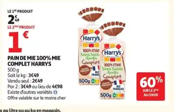 Offre Pain de mie 100% mie complet harrys chez Auchan