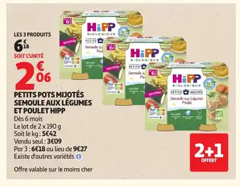 Offre HIPP Petits pots mijotés semoule aux légumes et poulet chez Auchan