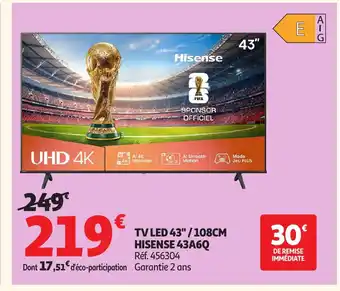 Actuellement en offre chez Auchan : HISENSE TV LED 43"/108CM 43A6Q ✅ Valable du 7-01 au 3-02.