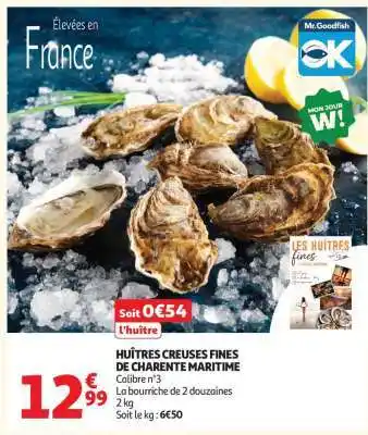 En plus de l'offre HUÎTRES CREUSES FINES DE CHARENTE MARITIME, Auchan propose une large gamme de produits. Consultez le Catalogue Auchan hebdomadaire pour découvrir les meilleures offres et promotions. En plus de HUÎTRES CREUSES FINES DE CHARENTE MARITIME, il y a aussi : Huîtres creuses fines de charente maritime, Sans marque huîtres creuses fines de charente maritime & Huitres creuses Fines de Claire N°3.