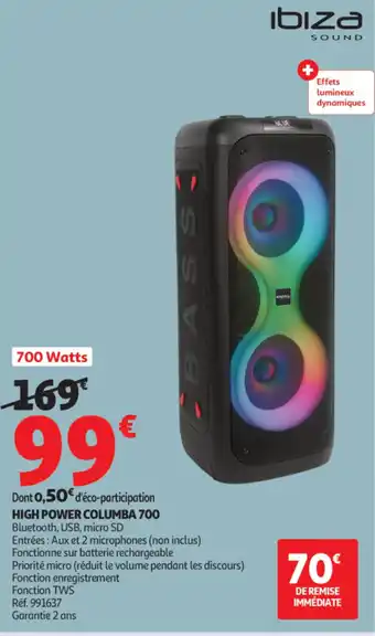 Offre IBIZA SOUND High power columba 700 chez Auchan