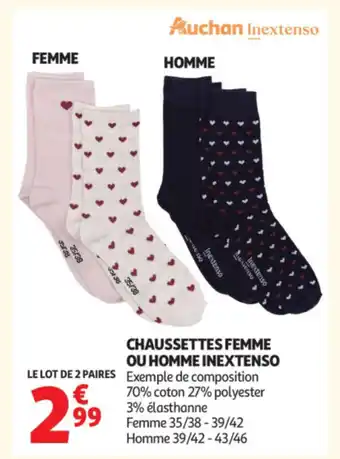Offre INEXTENSO Chaussettes femme ou homme chez Auchan