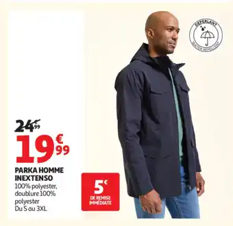 Actuellement en offre chez Auchan : INEXTENSO Parka homme ✅ Valable du 17-02 au 1-03.