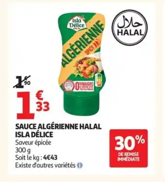 Actuellement en offre chez Auchan : ISLA DÉLICE Sauce algérienne halal ✅ Valable du 3-02 au 28-02.
