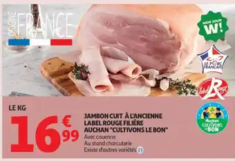 Jambon cuit à l'ancienne label rouge filiére auchan cultivons le bon : offres et promos Auchan à découvrir