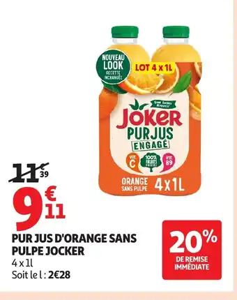 JOCKER Pur jus d'orange sans pulpe : offres et promos Auchan à découvrir