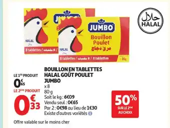 Actuellement en offre chez Auchan : JUMBO Bouillon en tablettes halal goût poulet ✅ Valable du 3-02 au 1-03.