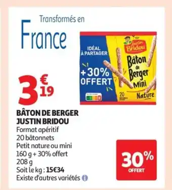 L'offre est disponible dans plusieurs magasins, vérifiez tous les produits pour obtenir le JUSTIN BRIDOU Bâton de berger le moins cher. Si vous souhaitez savoir si l'article est en vente avec une plus grosse remise dans un autre magasin, consultez la catégorie 'Supermarché'. Ces offres pourraient aussi vous intéresser : Justin bridou - bâton de berger, Justin bridou bâton de berger mini nature & JUSTIN BRIDOU Mini bâton de berger.