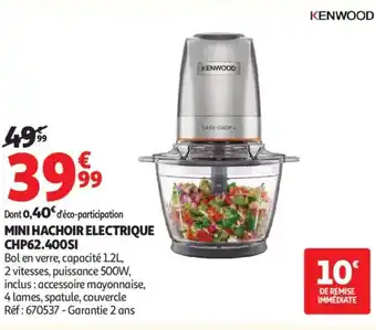 Actuellement en offre chez Auchan : KENWOOD Mini hachoir electrique CHP62.400SI ✅ Valable du 3-02 au 1-03.