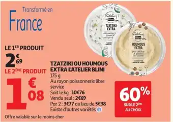 L'ATELIER BLINI Tzatziki ou houmous extra offres et promotions en ligne chez Auchan
