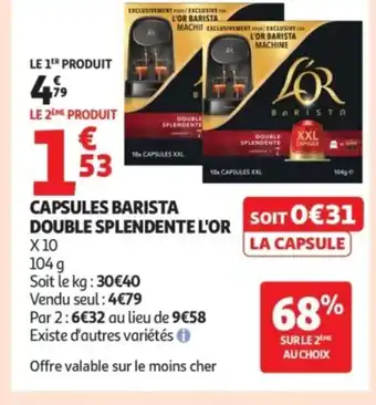 Actuellement en offre chez Auchan : L'OR Capsules barista double splendente ✅ Valable du 16-12 au 24-12.