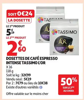 Actuellement en offre chez Auchan : L'OR Dosettes de café espresso intense tassimo ✅ Valable du 6-01 au 18-01.