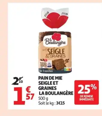 Actuellement en offre chez Auchan : LA BOULANGÈRE Pain de mie seigle et graines ✅ Valable du 16-12 au 24-12.