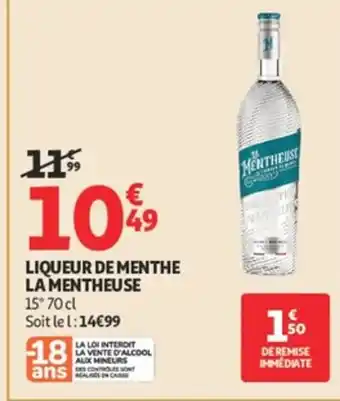 Actuellement en offre chez Auchan : LA MENTHEUSE Liqueur de menthe ✅ Valable du 16-12 au 31-12.