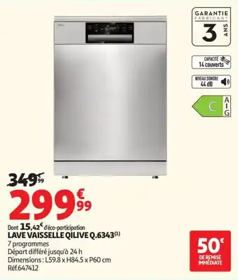 Actuellement en offre chez Auchan : Lave vaisselle qilive q.6343 ✅ Valable du 3-02 au 15-02.