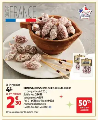 Actuellement en offre chez Auchan : LE GALIBIER Mini saucissons secs ✅ Valable du 26-12 au 4-01.