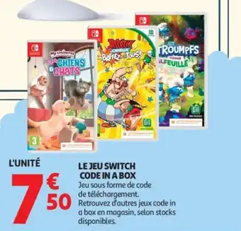 Le prix de l'offre Le jeu switch code in a box se trouve également en haut de la page, ainsi que la date à laquelle l'offre est disponible. Vous pouvez également vérifier les prix dans le Catalogue Auchan actuel ou sur le site Internet de Auchan. Les offres vous permettent d'acheter les produits Auchan au prix le plus bas.