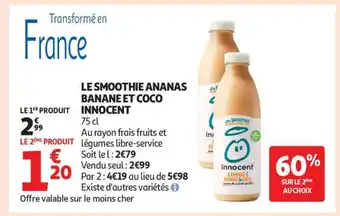 LE SMOOTHIE ANANAS BANANE ET COCO INNOCENT offres et promotions en ligne chez Auchan