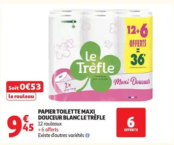 Actuellement en offre chez Auchan : LE TRÈFLE Papier toilette maxi douceur blanc ✅ Valable du 2-01 au 11-01.