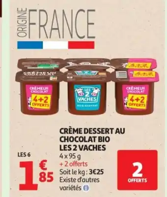 Actuellement en offre chez Auchan : LES 2 VACHES Crème dessert au chocolat bio ✅ Valable du 26-12 au 4-01.