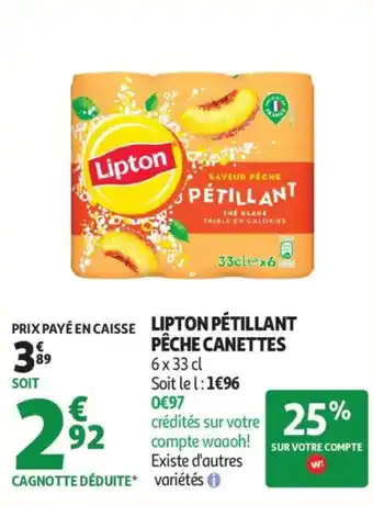 Offre Lipton pétillant pêche canettes chez Auchan