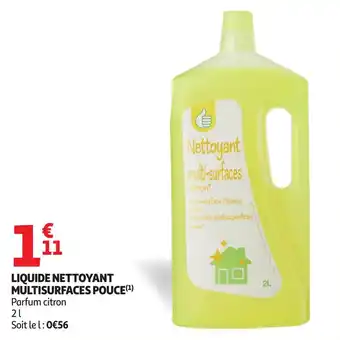 Le prix de l'offre Liquide nettoyant multisurfaces pouce se trouve également en haut de la page, ainsi que la date à laquelle l'offre est disponible. Vous pouvez également vérifier les prix dans le Catalogue Auchan actuel ou sur le site Internet de Auchan. Les offres vous permettent d'acheter les produits Auchan au prix le plus bas.