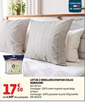 Le prix de l'offre Lot de 2 oreillers d'antan colas normand se trouve également en haut de la page, ainsi que la date à laquelle l'offre est disponible. Vous pouvez également vérifier les prix dans le Catalogue Auchan actuel ou sur le site Internet de Auchan. Les offres vous permettent d'acheter les produits Auchan au prix le plus bas.