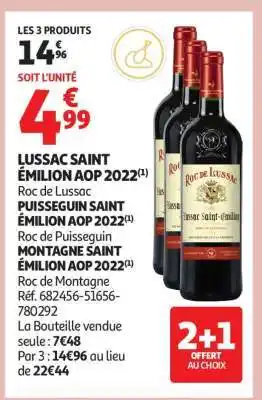 Actuellement en offre chez Auchan : Lussac Saint Émilion Aop 2022 ✅ Valable du 17-03 au 29-03.