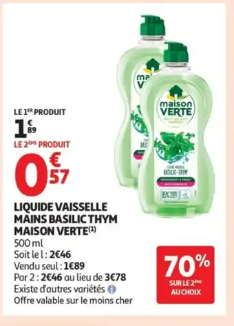 Actuellement en offre chez Auchan : MAISON VERTE Liquide vaisselle mains basilic thym ✅ Valable du 17-02 au 1-03.