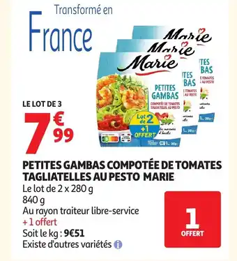 Cette MARIE Petites gambas compotée de tomates tagliatelles au pesto est disponible dans les magasins ci-dessous en fonction de votre emplacement configuré:
