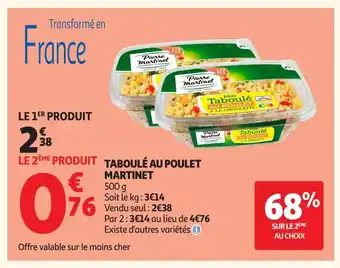 Actuellement en offre chez Auchan : MARTINET Taboulé au poulet ✅ Valable du 14-04 au 20-04.