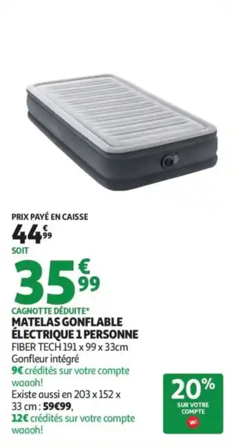 Offre Matelas gonflable électrique 1 personne chez Auchan