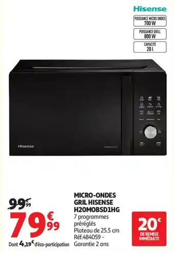 Actuellement en offre chez Auchan : Micro-ondes gril hisense h20mobsd1hg ✅ Valable du 3-02 au 15-02.