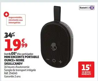 Actuellement en offre chez Auchan : MINI ENCEINTE PORTABLE OUNCE+ NOIRE SKULLCANDY ✅ Valable du 17-03 au 22-03.