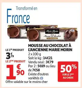 Actuellement en offre chez Auchan : Mousse Au Chocolat À L'ancienne Marie Morin ✅ Valable du 8-04 au 19-04.