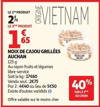 Actuellement en offre chez Auchan : Noix De Cajou Grillées Auchan ✅ Valable du 17-03 au 21-03.