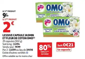 Actuellement en offre chez Auchan : Lessive capsule jasmin et fleur de coton omo ✅ Valable du 20-01 au 1-02.