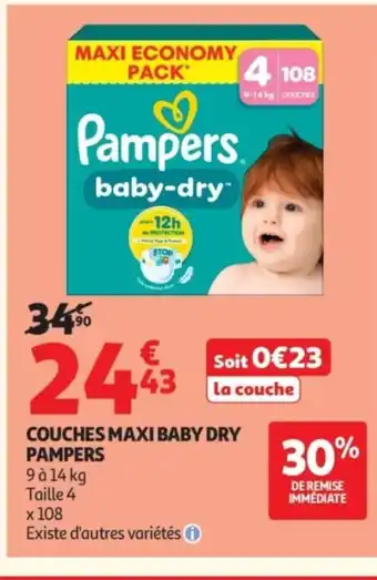 Actuellement en offre chez Auchan : PAMPERS Couches maxi baby dry ✅ Valable du 10-02 au 22-02.
