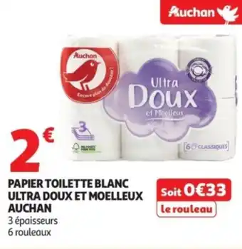 Actuellement en offre chez Auchan : Papier toilette blanc ultra doux et moelleux auchan ✅ Valable du 13-01 au 25-01.