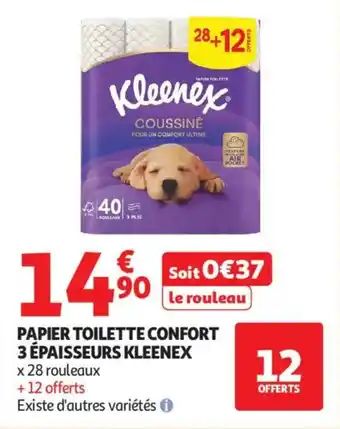 Actuellement en offre chez Auchan : Papier toilette confort 3 épaisseurs kleenex ✅ Valable du 21-04 au 2-05.