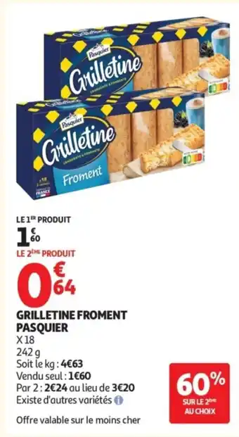 PASQUIER Grilletine froment offres et promotions en ligne chez Auchan