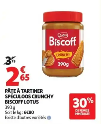 Actuellement en offre chez Auchan : Pâte à tartiner spéculoos crunchy biscoff lotus ✅ Valable du 20-01 au 1-02.