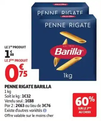 Offre Penne rigate barilla 1 kg chez Auchan