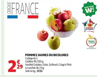 En plus de l'offre Pommes jaunes ou bicolores, Auchan propose une large gamme de produits. Consultez le Catalogue Auchan hebdomadaire pour découvrir les meilleures offres et promotions. En plus de Pommes jaunes ou bicolores, il y a aussi : Pommes bicolores, Pommes bicolores & Pommes bicolores.