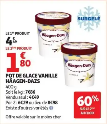 Actuellement en offre chez Auchan : Pot de glace vanille häagen dazs ✅ Valable du 3-02 au 15-02.