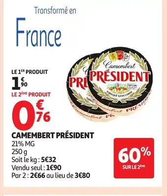 Actuellement en offre chez Auchan : PRÉSIDENT Camembert ✅ Valable du 6-01 au 18-01.