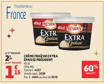 Actuellement en offre chez Auchan : PRÉSIDENT Crème fraîche extra épaisse ✅ Valable du 16-12 au 31-12.