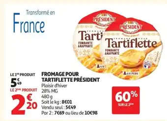 Actuellement en offre chez Auchan : Fromage pour tartiflette président ✅ Valable du 20-01 au 1-02.