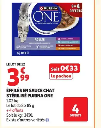 Actuellement en offre chez Auchan : PURINA ONE Éffilés en sauce chat stérilisé ✅ Valable du 2-01 au 11-01.